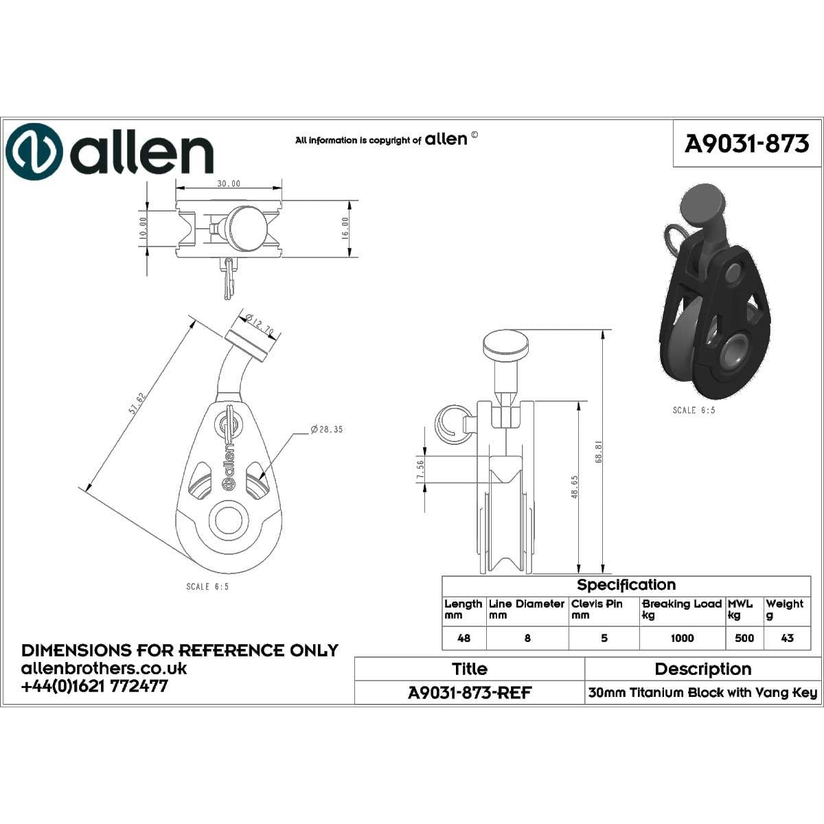 Allen 30mm Titan Ilca Vang Block with Key - Sailing Chandlery